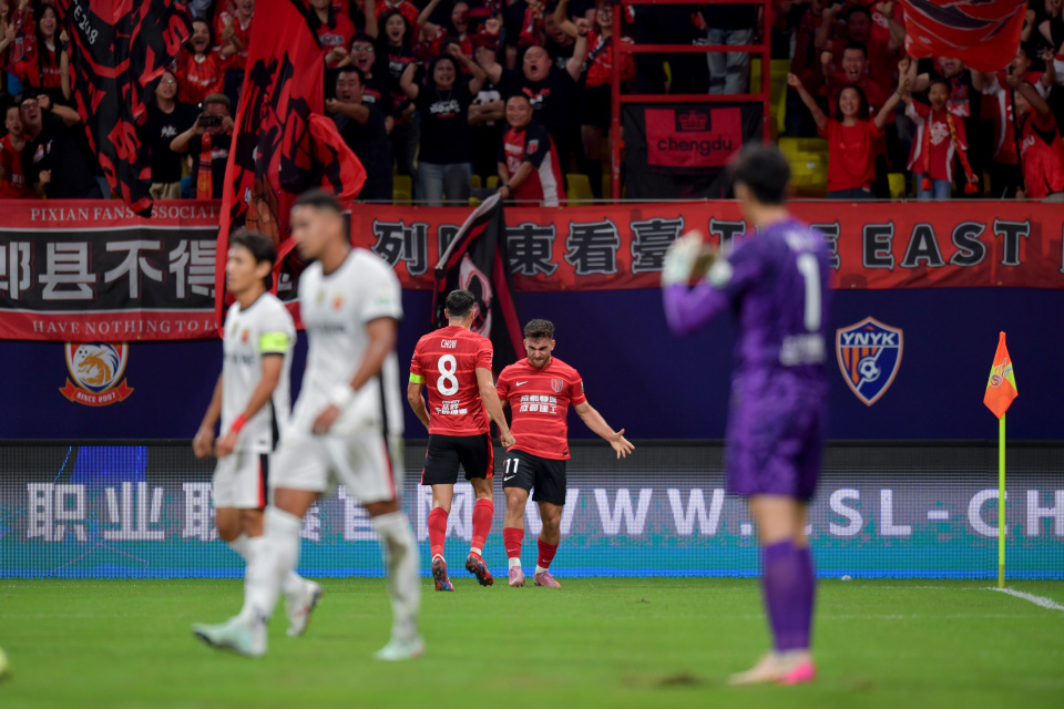 诚然,成都蓉城是一支打法克制上海海港的队伍,因为他们摆出五后卫防守,不利于海港打出边路叠瓦或者是肋部穿插,同时他们的反击中转移球对角线找两翼,恰好又是海港限制不住的。