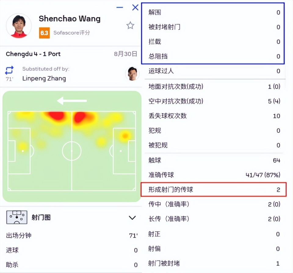 问题是对方五后卫阵型下,上海海港锋线给不了对方压力,那么成都蓉城就能把边翼卫当做准边锋来用。古尔芬克尔打穿王燊超(防守数据全挂0),就是穆斯卡特战术角力完败的一个明证。